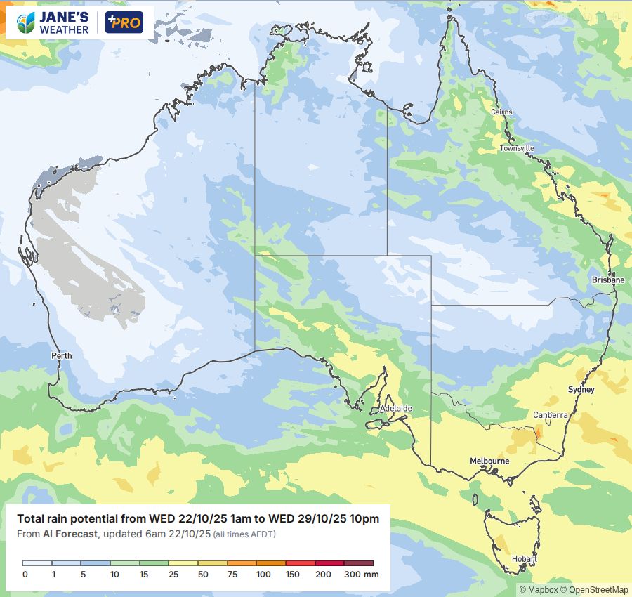 This is a rain event that takes a tour of Australia’s southern capitals, sightseeing through all the regional areas in between. Starting in Perth, and visiting Adelaide, Melbourne and Hobart on the weekend, then Canberra and Sydney early to mid week.