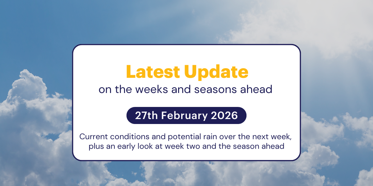This week's update focuses in detail on the next two weeks of weather - and what we know about the months ahead - very important if you are dry sowing and working out what you are going to do this year.